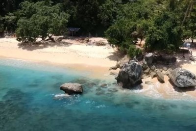 Laut Biru dan Pasir Putih: Kombinasi sempurna untuk berenang atau sekadar berjalan di tepi pantai.
